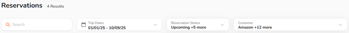 You can filter by Trip Dates, Reservation Status, or Customer to refine your results.